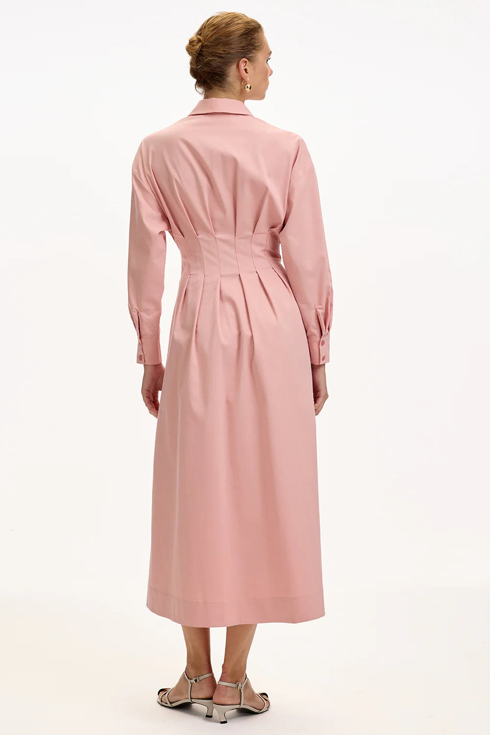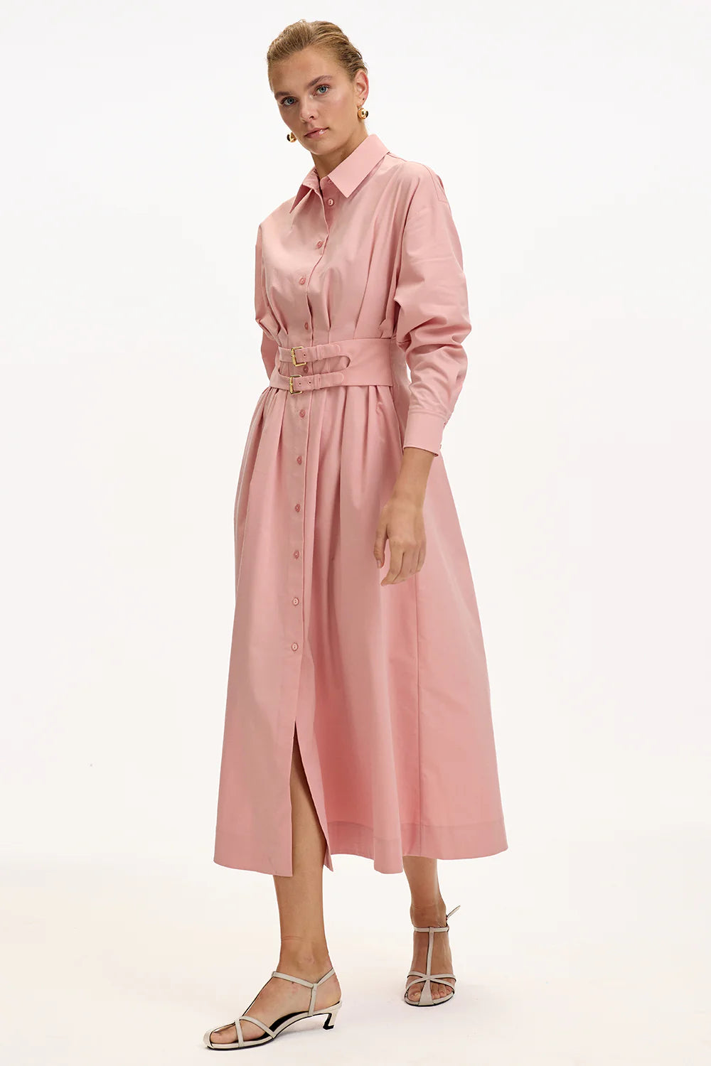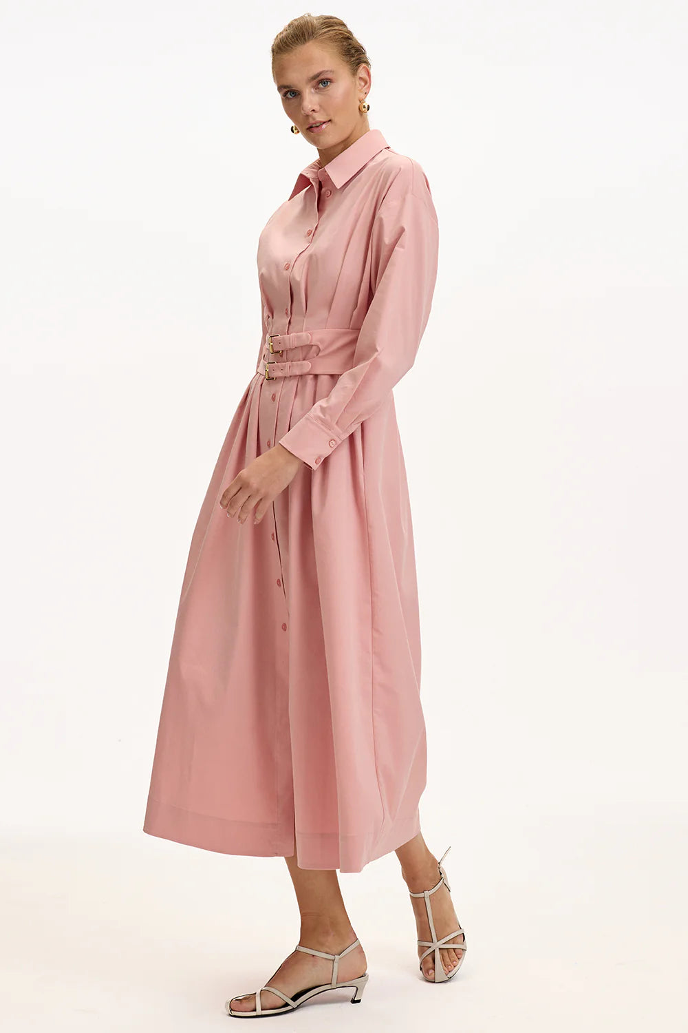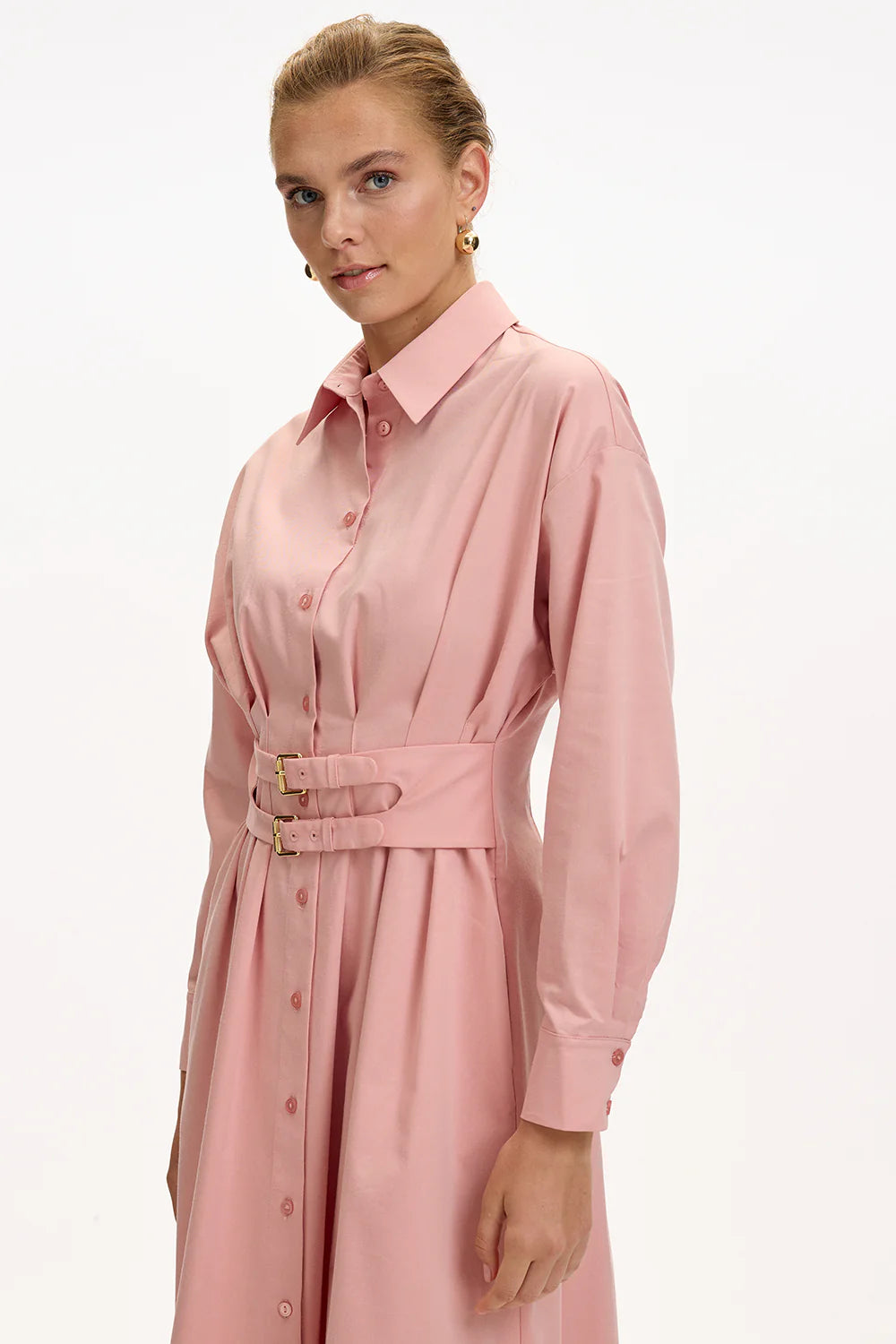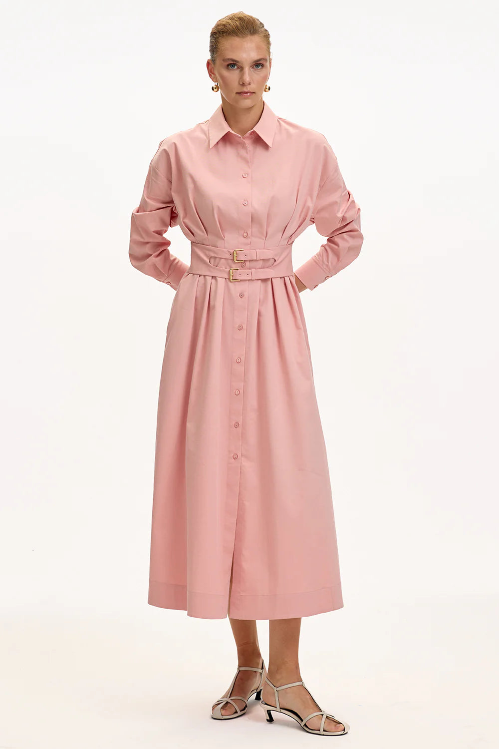 Exquise Bele Oturan Kemer Detaylı Regular Midi Gömlek Elbise