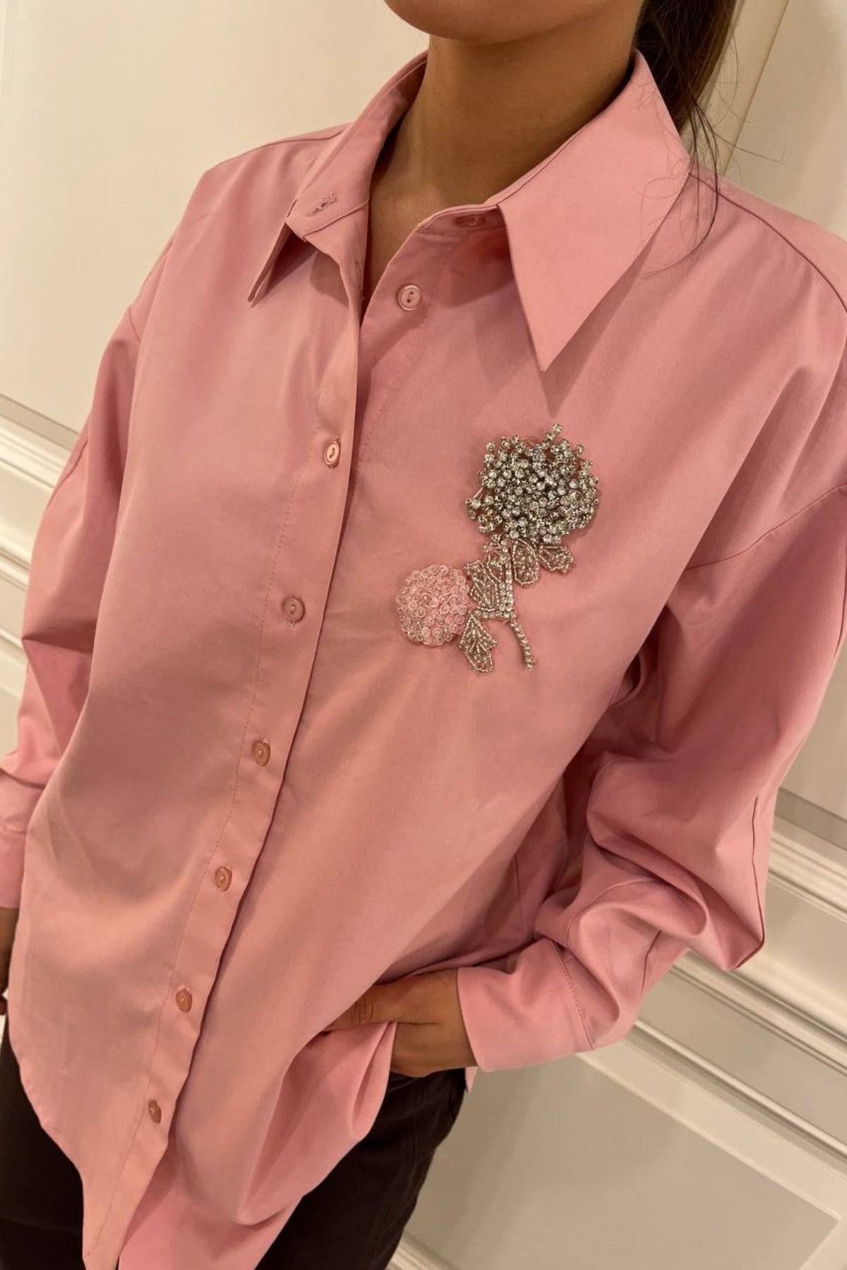 Exquise Çiçek Taş İşlemeli Uzun Kollu Regular Gömlek