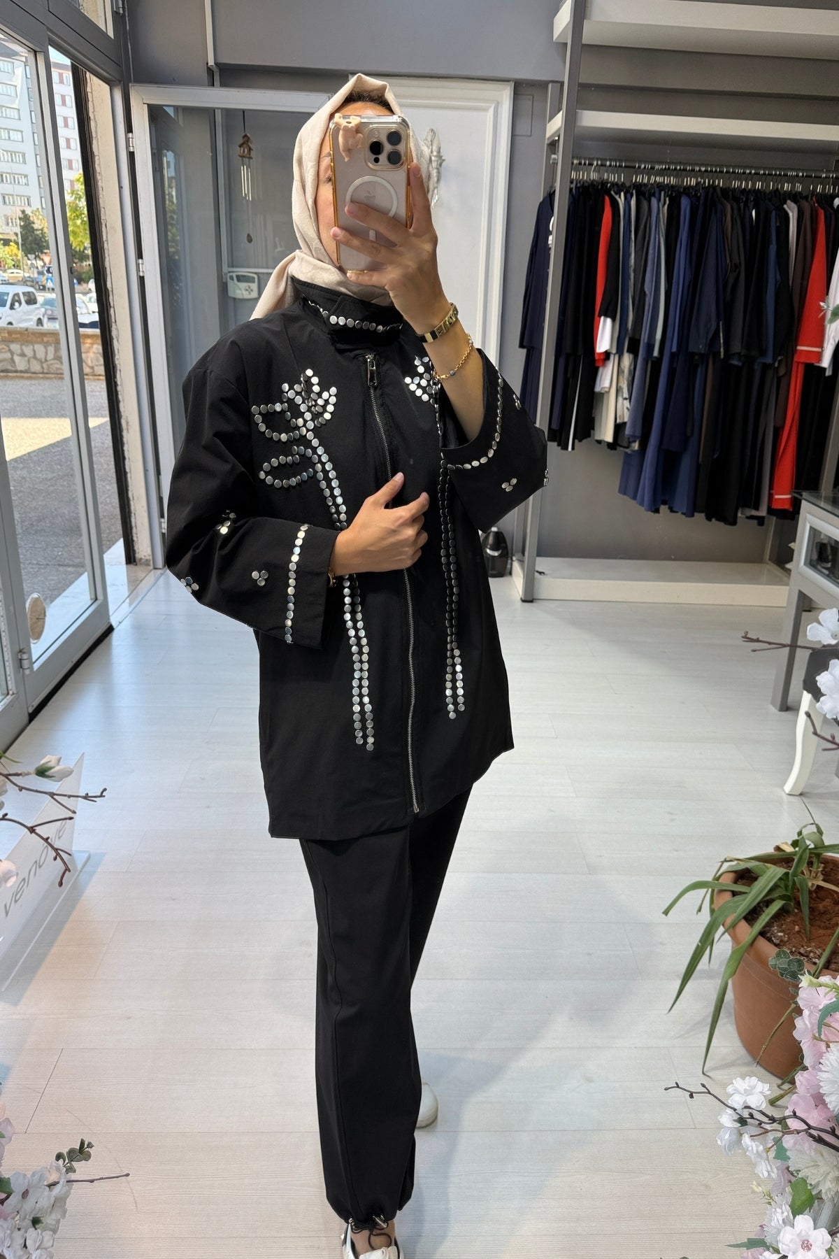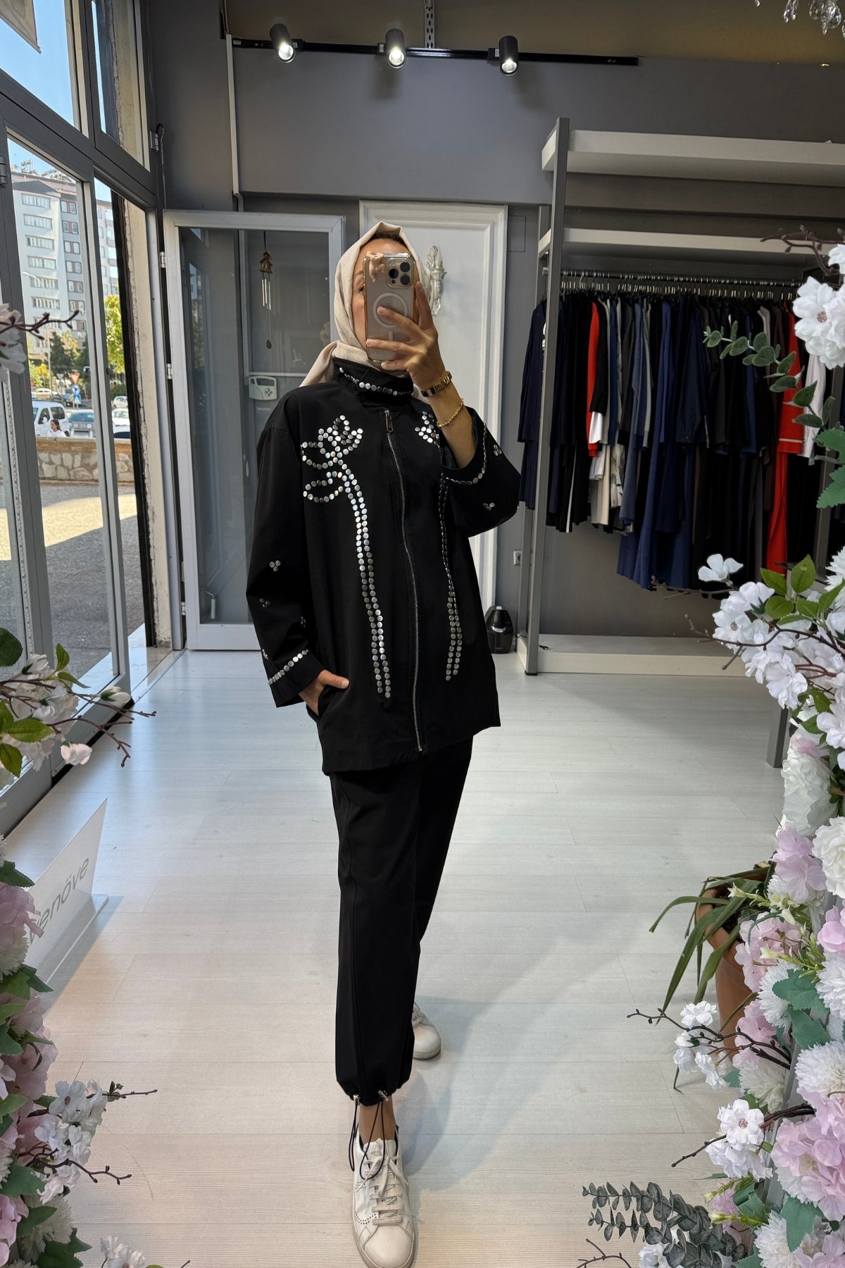 • Üst: Fermuarlı, rahat kesimli siyah ceket