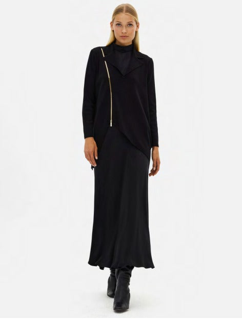 Miss Dalida Asimetrik Fermuarlı Siyah Tunik
