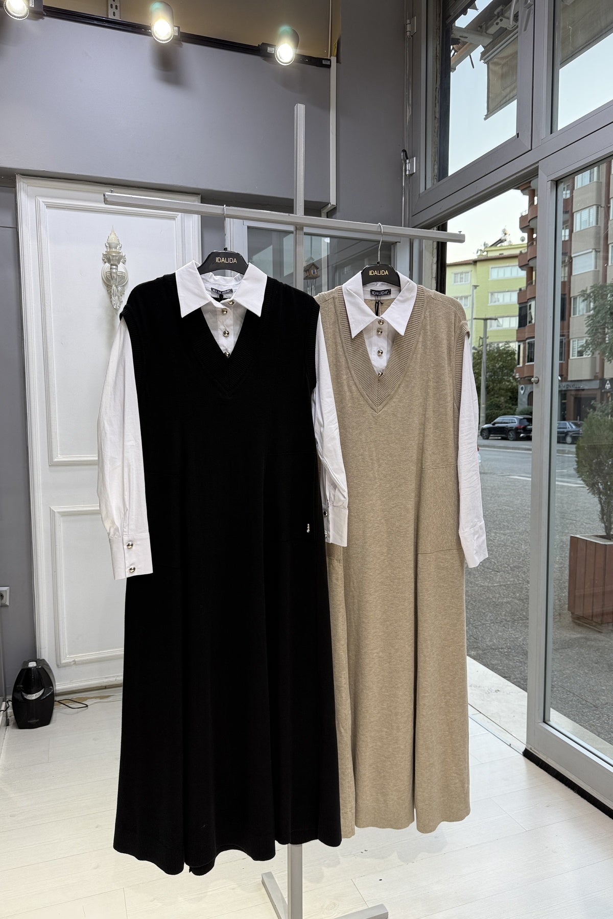 Miss Dalida’nın klasik zarafetini yansıtan bu gömlek yaka triko elbise, tek parçada şıklık ve konforu birleştirir. İç içe geçmiş görünümüyle hem kazak hem elbise havası verir. Triko dokusu sayesinde yumuşak, esnek ve sıcak tutan bir yapıya sahiptir. Gömlek yakası ve düğme detaylarıyla modern ve zarif bir tarz sunar. Günlük ve ofis kombinleri için idealdir.