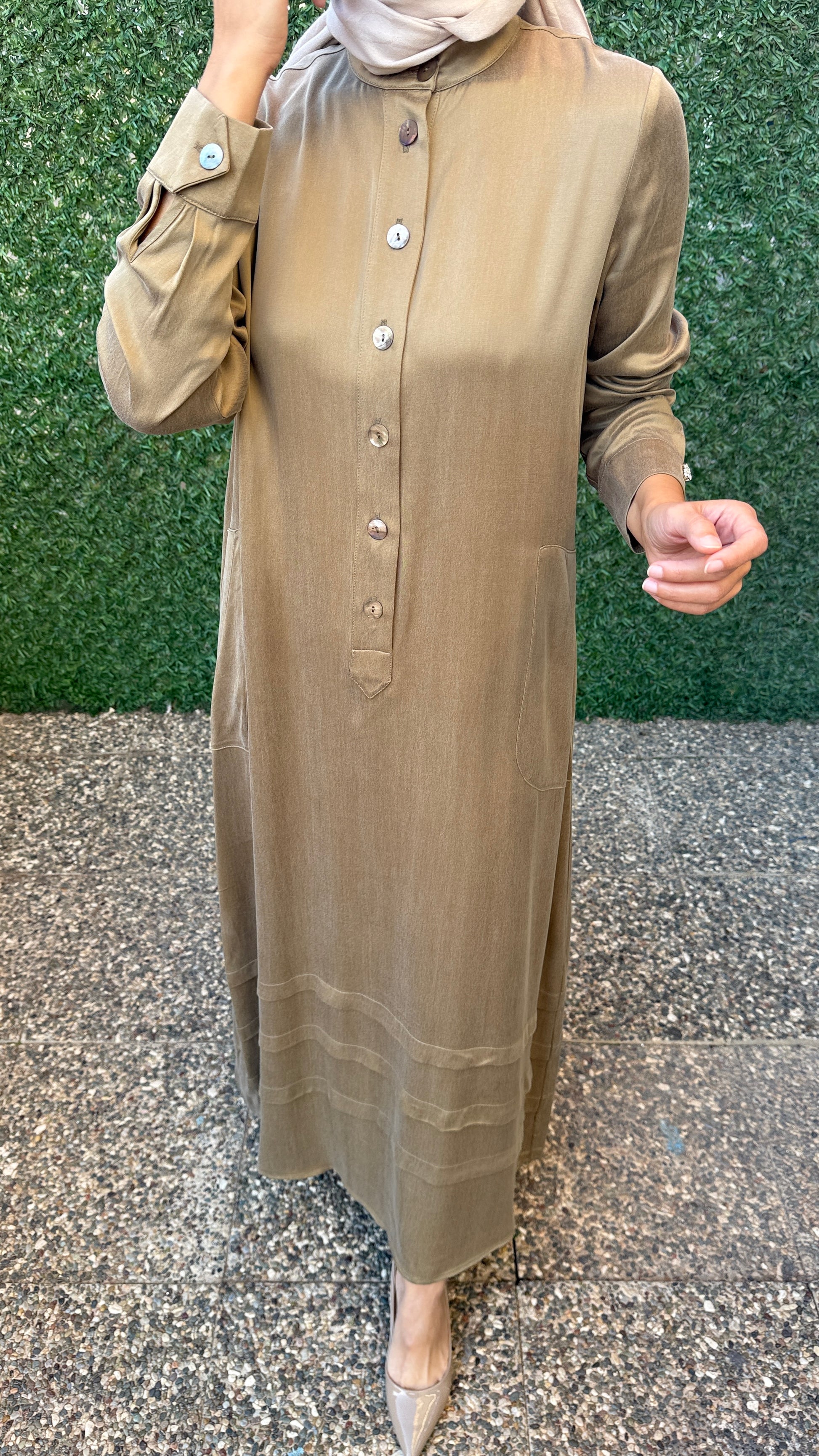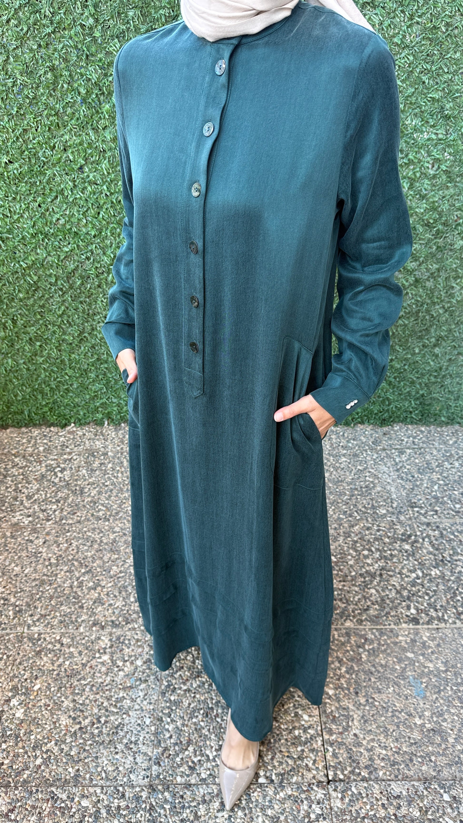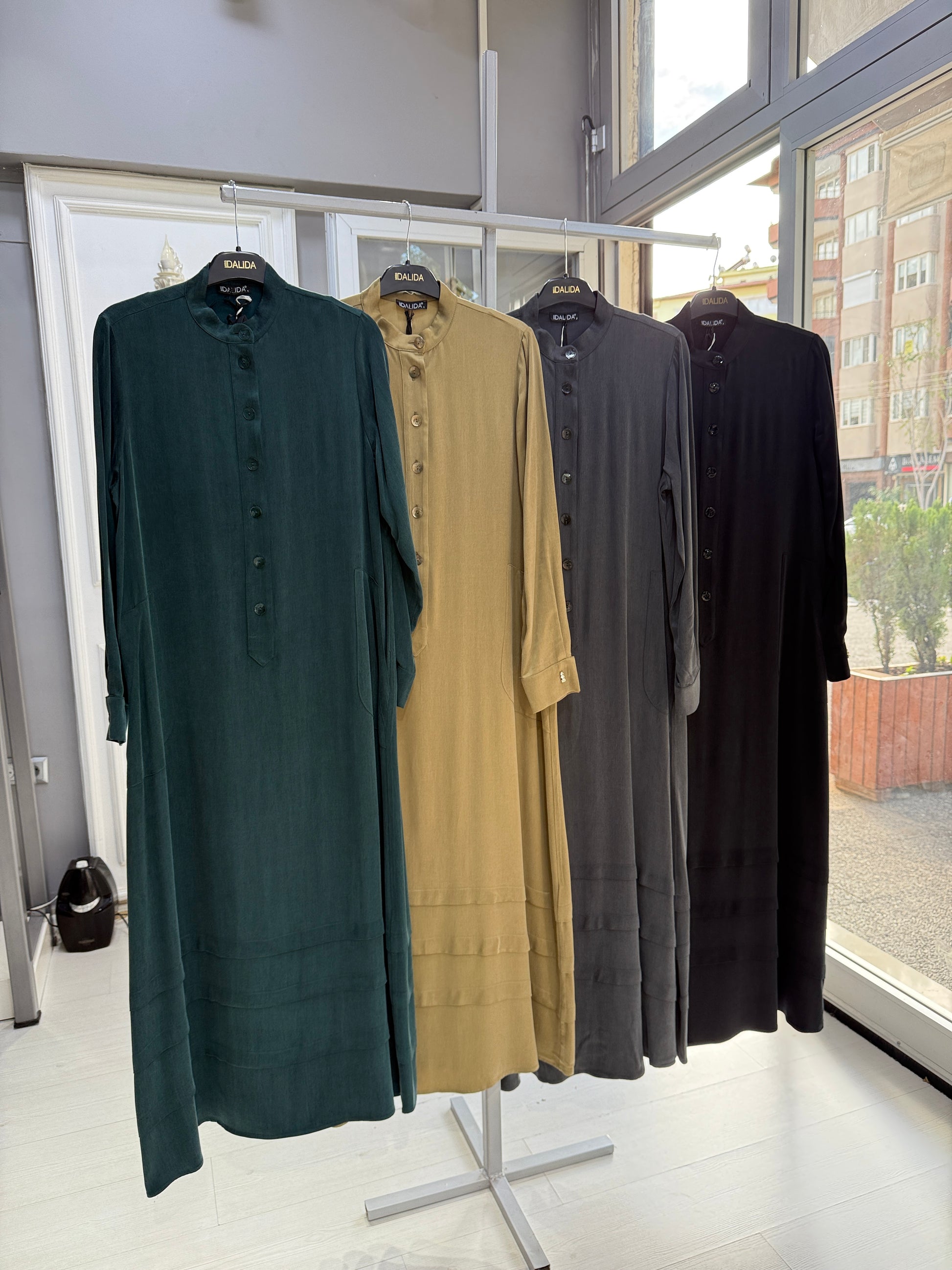 Miss Dalida Hakim Yaka Düğmeli Düz Renk Elbise