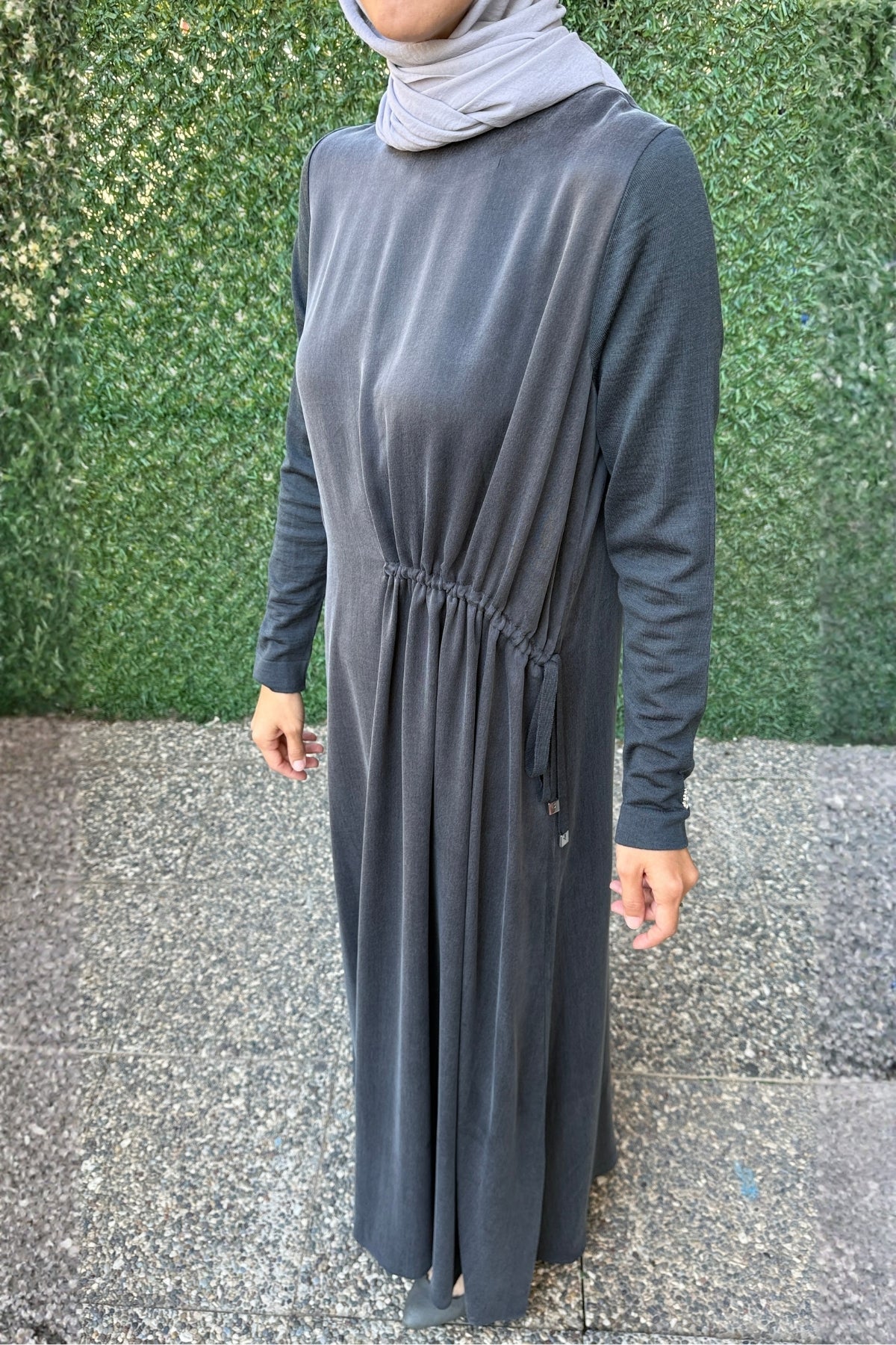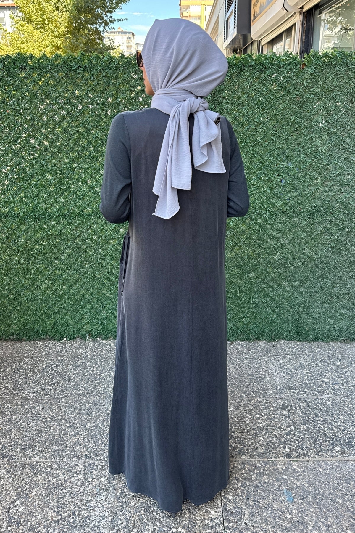 Modern ve rahat bir şıklık sunan bu elbise, yumuşak dokusu ve sade tasarımıyla günlük kullanım için ideal bir tercihtir. Bisiklet yaka ve uzun kollu modeliyle mevsim geçişlerine uygundur. Yan kısmındaki büzgü detayı, elbiseye hareket katarken vücut formunu zarifçe ortaya çıkarır. Tesettür giyime uygun kesimiyle hem konforlu hem de stil sahibi bir görünüm sunar.
