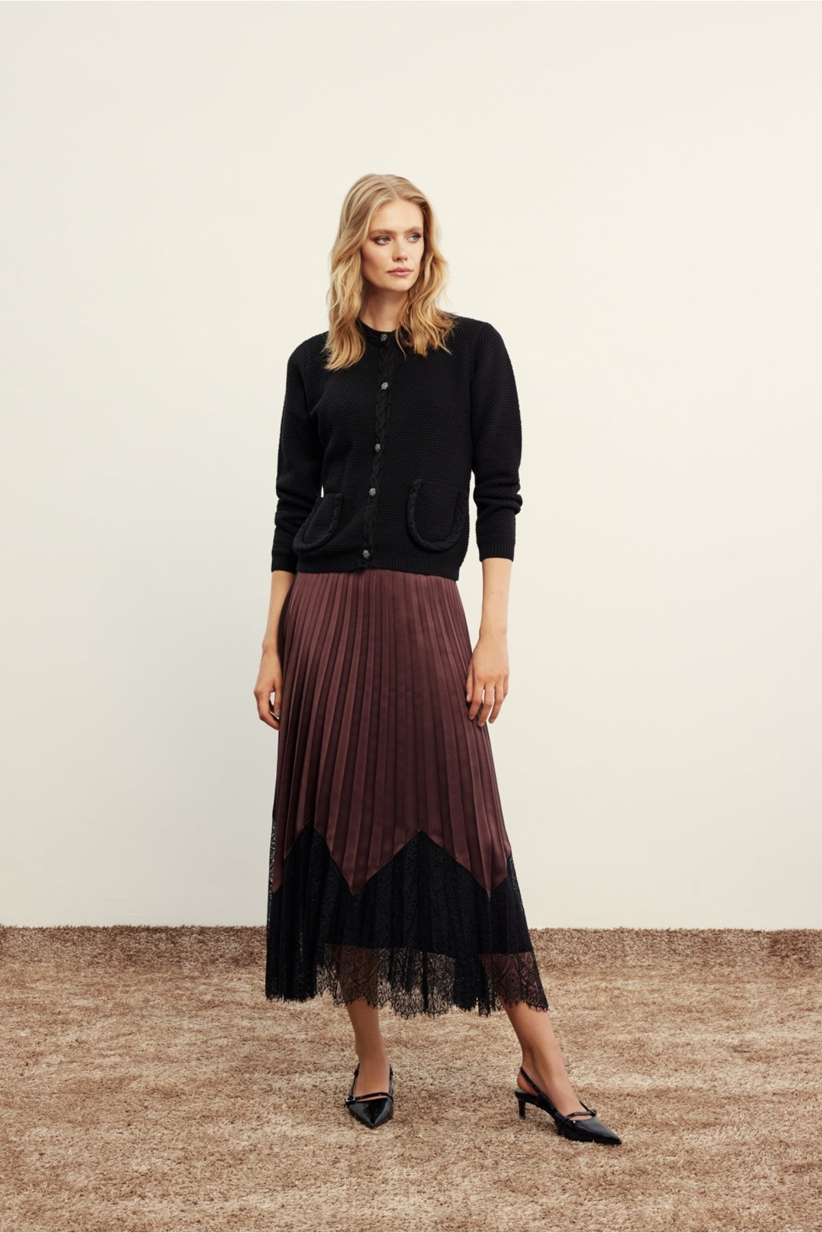 Venöve’nin sade ama zarif çizgisini taşıyan Becca Hırka, dokulu triko kumaşı ve ince işçilikli cep detaylarıyla sezonun en gözde parçalarından biri. Hem klasik hem modern stillerle kolayca kombinlenebilir yapısıyla dolabınızın joker parçası olmaya aday. Düğmeli tasarımı sayesinde ister açık ister kapalı şekilde kullanılabilir. Günlük şıklığa sıcak bir dokunuş katar.