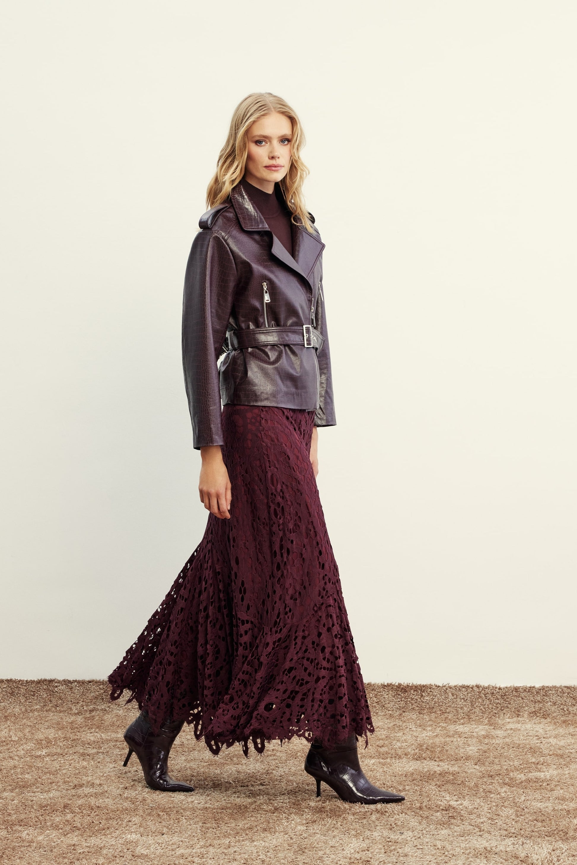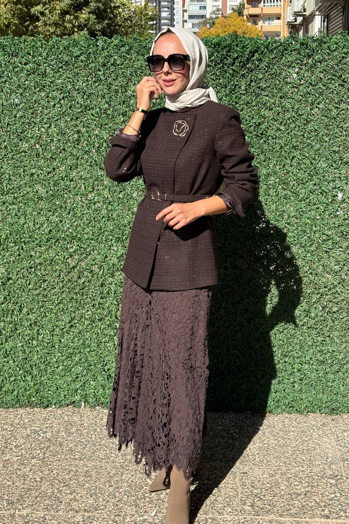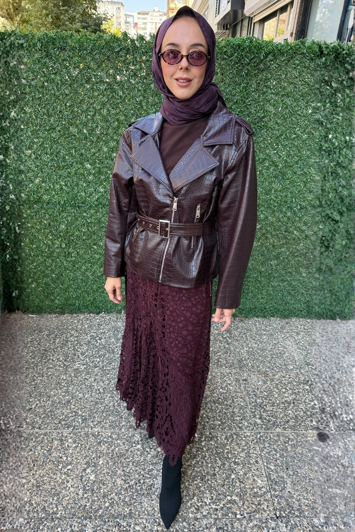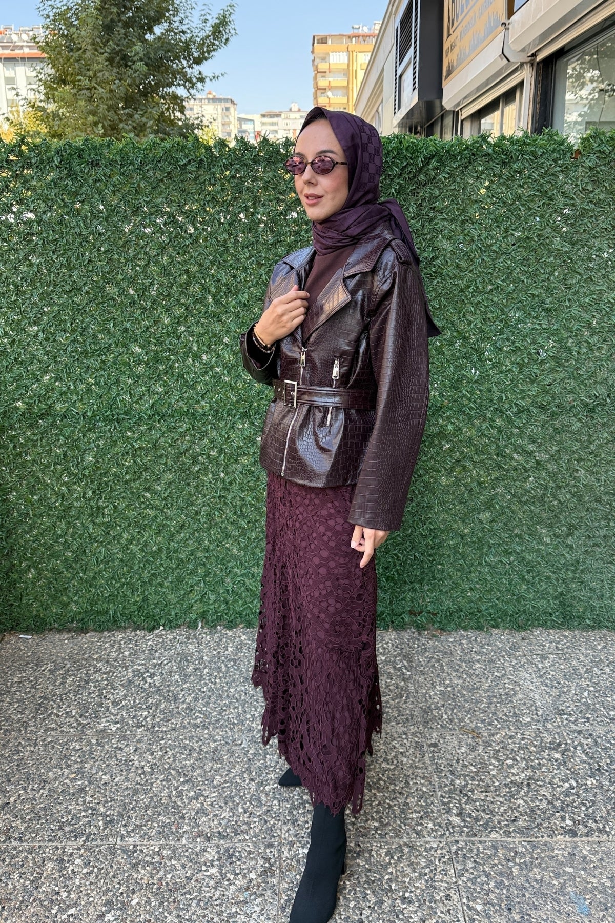 Desen detaylara sahip uzun etek. Hareketli yapısı ve dikkat çekici dokusuyla kombine şıklık katar. Rahat kalıbı sayesinde hem konforlu hem de özenli bir görünüm sunar.