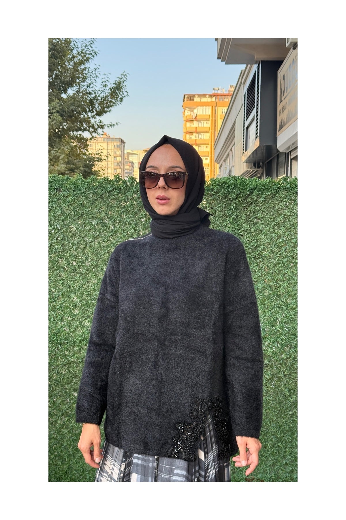 Venöve’nin modern çizgisini yansıtan bu siyah angora kazak, hem şık hem konforlu bir duruş sunar. Yumuşak triko kumaşıyla sıcak tutarken, sade tasarımı sayesinde farklı alt parçalarla kolayca kombinlenir. Günlük şehir stilinden ofis şıklığına kadar her ortamda zarif bir görünüm sağlar.
